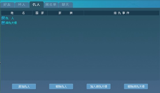 有PK,就难免有恩怨情仇。对于那些你恨之入骨的仇家怎么办?将他列入仇人名单内时时铭记吧!
