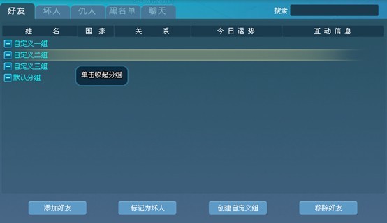 4、针对好友列表中的玩家进行根据自己的喜好,进行自定义分组。