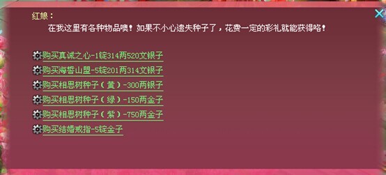 如果不小心把相思树种子遗失了,能去红娘处重新购买噢!