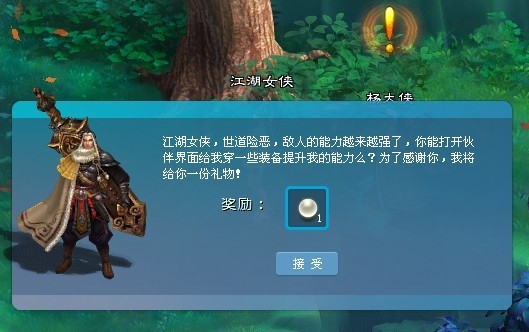 当伙伴处于出战状态时,将会触发随机事件。鼠标点击伙伴后可接取伙伴任务,完成后获得奖励。