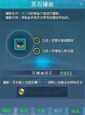 5.把想要镶嵌的灵石拖到对应的孔槽中即可。