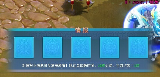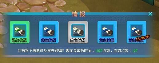 除了刺探潜入的时候沿途所遇的各种阻拦威胁之外,在获取情报的玩法上,也相当有意思。获取情报不再是进行读条的随机获取方式,而是改为反卡牌式的玩家自由选择模式。玩家通过与NPC对话,进入翻牌界面,选择自己想要的某张牌进行猜选,获得情报,大大增加了游戏的可玩性。并且,即使自己一直运气不好也不需要担心,十次必绿的游戏设定让你最终能够获得让自己满意的情报,还等什么,赶紧行动吧。