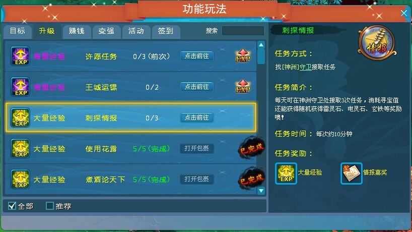 刺探任务最重带回来的是各种情报,交付指挥官之后,获得经验奖励以及国家功勋,用于兑换各种物资奖励以及提升自身实力。